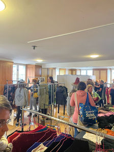 Der erste Kleidertausch unter neuer Leitung fand im März 2025 statt und wurde im Familienzentrum mit viel Engagement und Liebe umgesetzt. Neben der Möglichkeit, gut erhaltene Kleidung zu tauschen, sorgten eine Cuplibar, Hotdogs, Kuchen und erfrischende Getränke im Kafi Lollipop für eine einladende Atmosphäre. Auch die Flickecke bleibt erhalten, sodass Kleidung nicht nur weitergegeben, sondern auch repariert und aufgewertet werden kann.